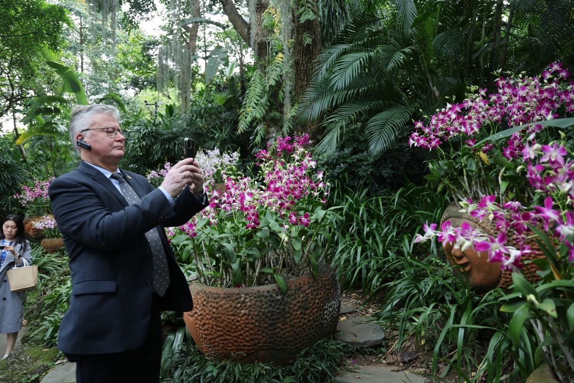 在青秀山风景区兰园,品种各异的兰花吸引了驻华使节们的目光。广西云-广西日报记者 梁凯昌 摄