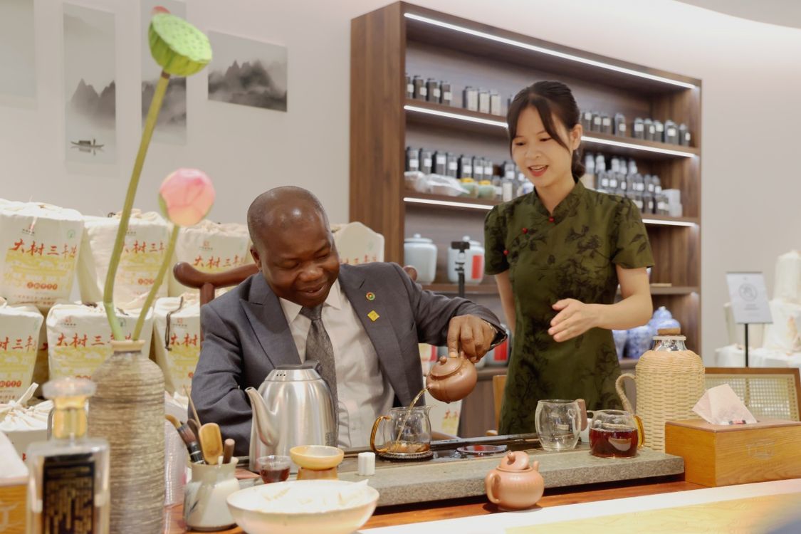 在梧州六堡茶南宁展示馆,代表团循着茶香开启文化体验之旅。通过聆听六堡茶“从山间到世界”的历史渊源、观看传统制作技艺展演、品尝醇厚茶汤,使节们深入感受中国的茶文化。