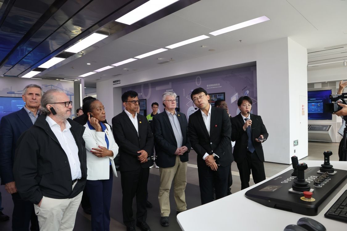 来到北部湾港钦州自动化集装箱码头,只见无人集装箱卡车有序穿梭,大型塔吊精准完成装卸作业——高度智能化的作业场景,让驻华使节们连连点赞。