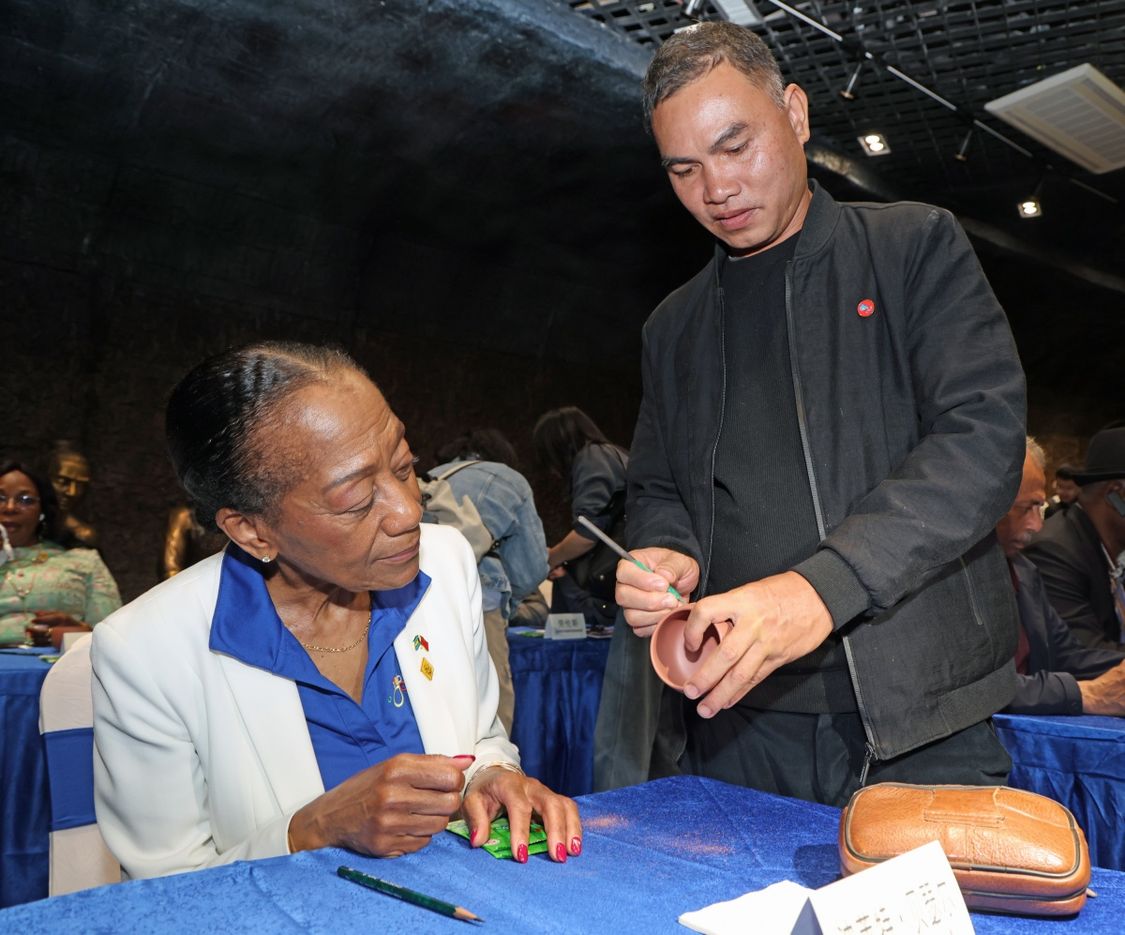 “中国历史文化本身就极具魅力,坭兴陶让我们看到了中国文化的另外一面。”巴哈马驻华大使波莱特·贝瑟尔在体验后表示,这种对传统文化的珍视与传承“美好而动人”。她在陶坯上刻下名字,并写下“巴哈马、中国,永远的朋友”,以此见证两国友好情谊。