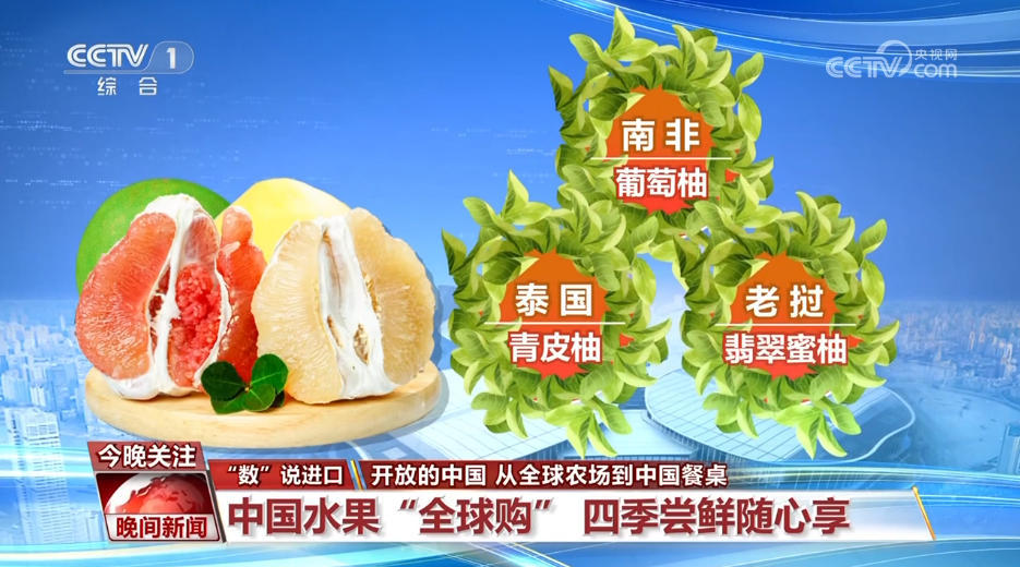 此外,我们身边的柚子品种也多了起来,南非葡萄柚、泰国青皮柚、老挝翡翠蜜柚等。目前,我国已经准入16个国家和地区的柚子,一年四季都可以品尝不同口味的新鲜柚子。
