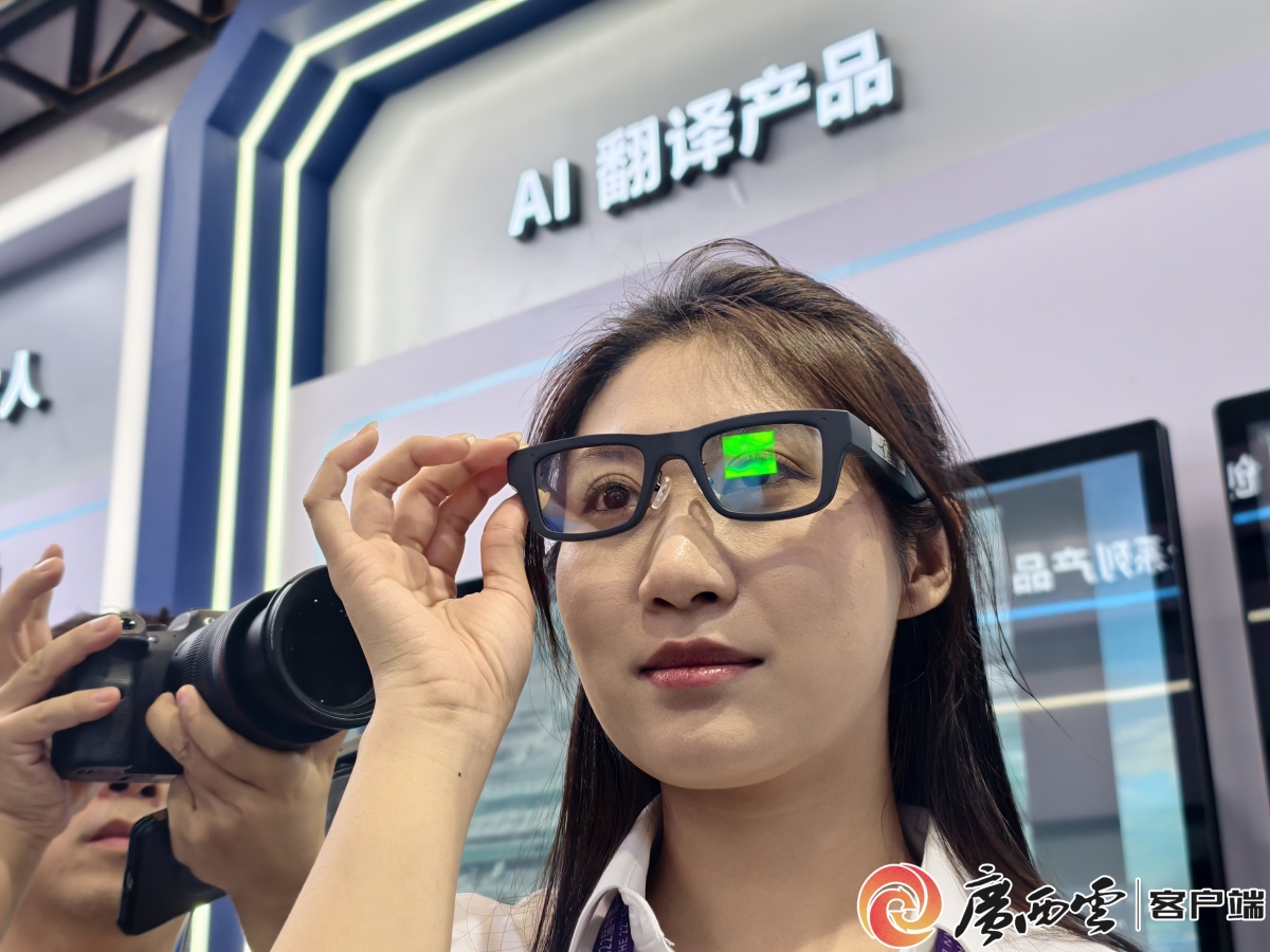 迈越公司在今年东博会上展示AI翻译提词眼镜。 广西云-广西日报记者 徐天保 摄