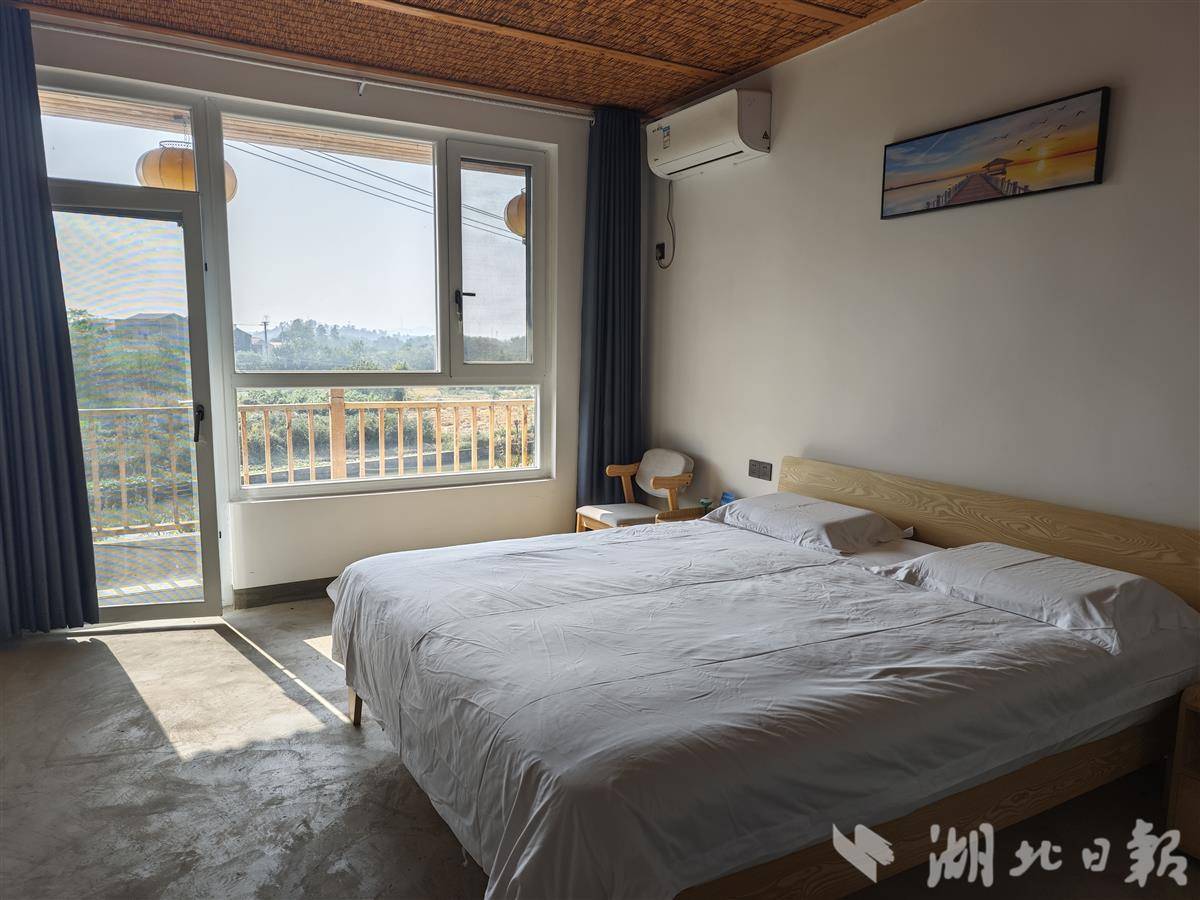62岁的村民胡正烈,干过保安和水电工,如今,他回村里当起民宿管家。胡兴咀118号,是他负责的民宿之一,这间民宿还有个文艺的名字——稻香居。推门而入,是一进小院,院子里有三层小楼。屋内有茶台、餐桌、书架,装修风格朴素,但空调、抽水马桶等现代化生活设施一应俱全,还配备了厨房、棋牌室等。胡正烈说,已经有客人预订了这栋民宿,要在这里过春节。