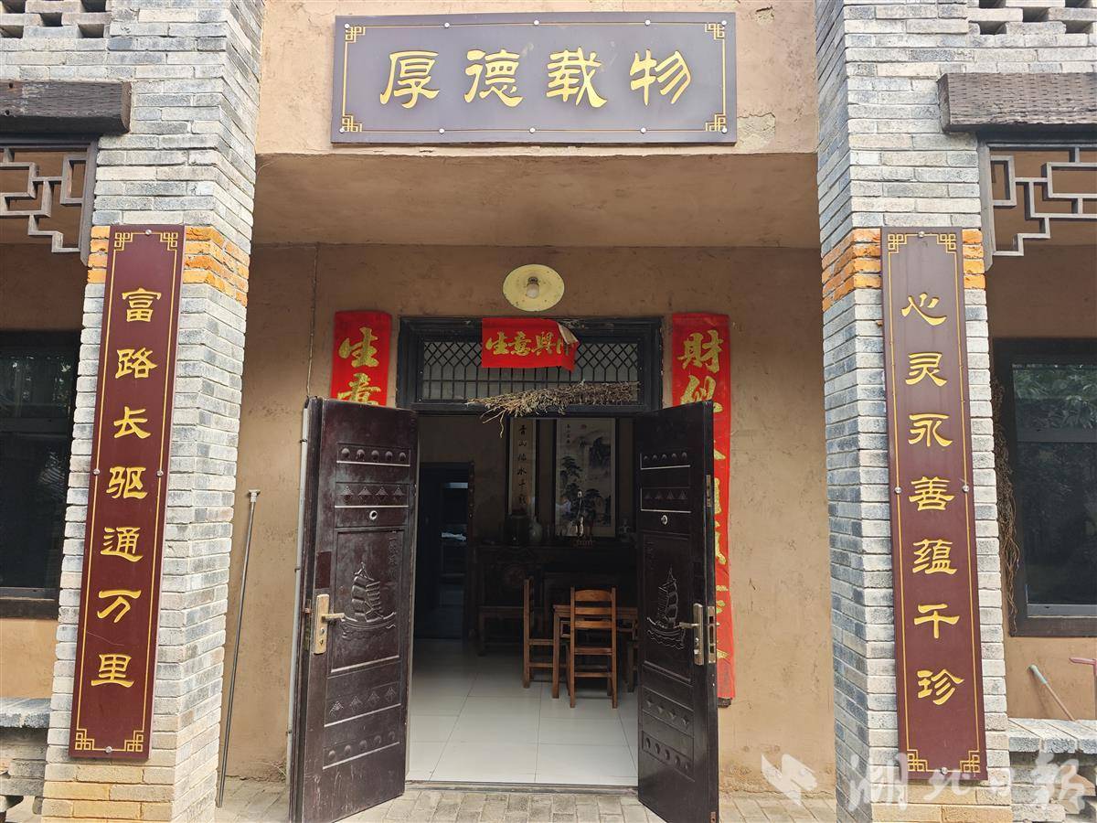 “富路长驱通万里,心灵永善蕴千珍”,江夏区五里界街童周岭村小朱湾,村民王万里在自家民宅的门口,挂了一副对联,嵌入自己的名字。