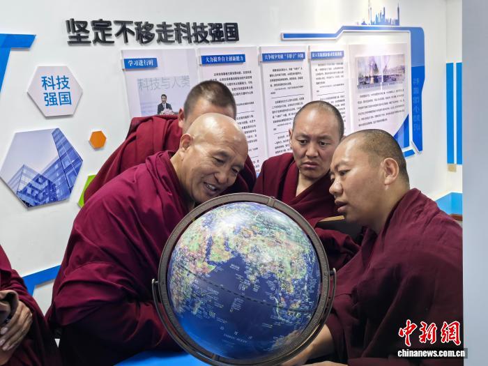 随后,参观人员来到新建的科普馆感受现代科技的魅力。馆内配备了VR虚拟现实设备、无人机、天文望远镜等现代化设施。僧人们通过VR眼镜“沉浸式”感受祖国大好河山和科技发展成就,通过天文望远镜探索宇宙奥秘,在科普图书区学习自然科学知识。这种将传统文化与现代科技相结合的教育方式,让大家在亲身体验中感受国家发展进步,增强了爱国情感和科学素养。