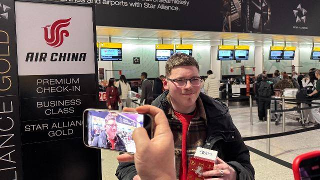 从机场现场氛围来看,英国游客对中国春节文化表现出浓厚兴趣。工作人员发放的新春礼包、文创产品和旅游资讯成为热门“打卡”元素。不少旅客在登机前拍照留念,记录这一特别的出发时刻。