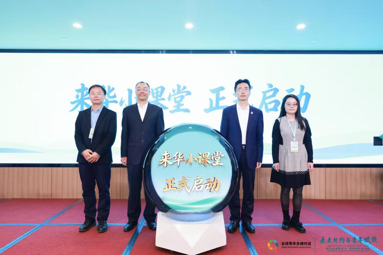 活动现场,“来华小课堂”推广启动仪式顺利举行。国家移民管理局移民事务服务中心副主任贾韬、北京外国语大学党委副书记苏大鹏、中国外文局文化传播中心副主任王侃,以及“来华小课堂”承建单位、北京外国语大学国际商学院党总支书记冯刚共同见证来了华小课堂的正式启动。由国家移民管理局移民事务服务中心联合中国外文局文化传播中心、北京外国语大学共同打造的“来华小课堂”,是面向在华外籍青年的一站式服务平台,旨在全方位助力留学生快速适应在华学习与生活,打造“留学北京”优质品牌,深化中外人文交流。