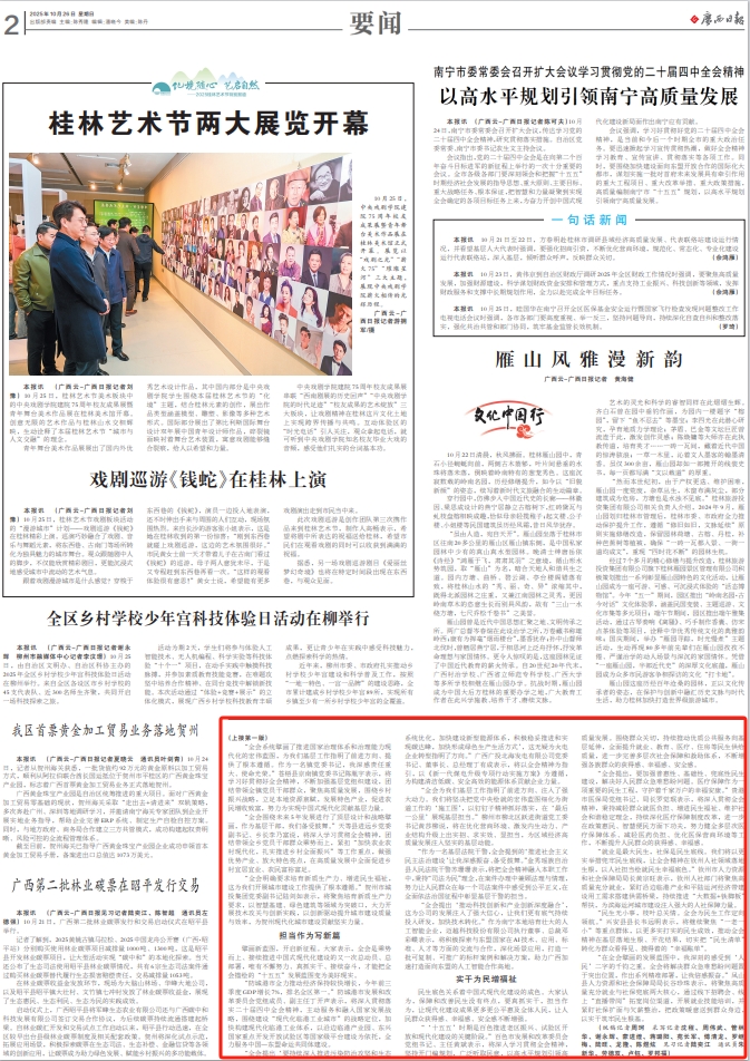 (统稿记者 周珂 采写记者 沈程 周伟武 管林华 谢永辉 蒙进煌 蒋璐阳 苑长军 傅清龙 罗继梅 陆旺 龙隆 陈煜炫 见习记者 陆奕江 通讯员 朱新华 劳德双 卢钰 罗邦福)